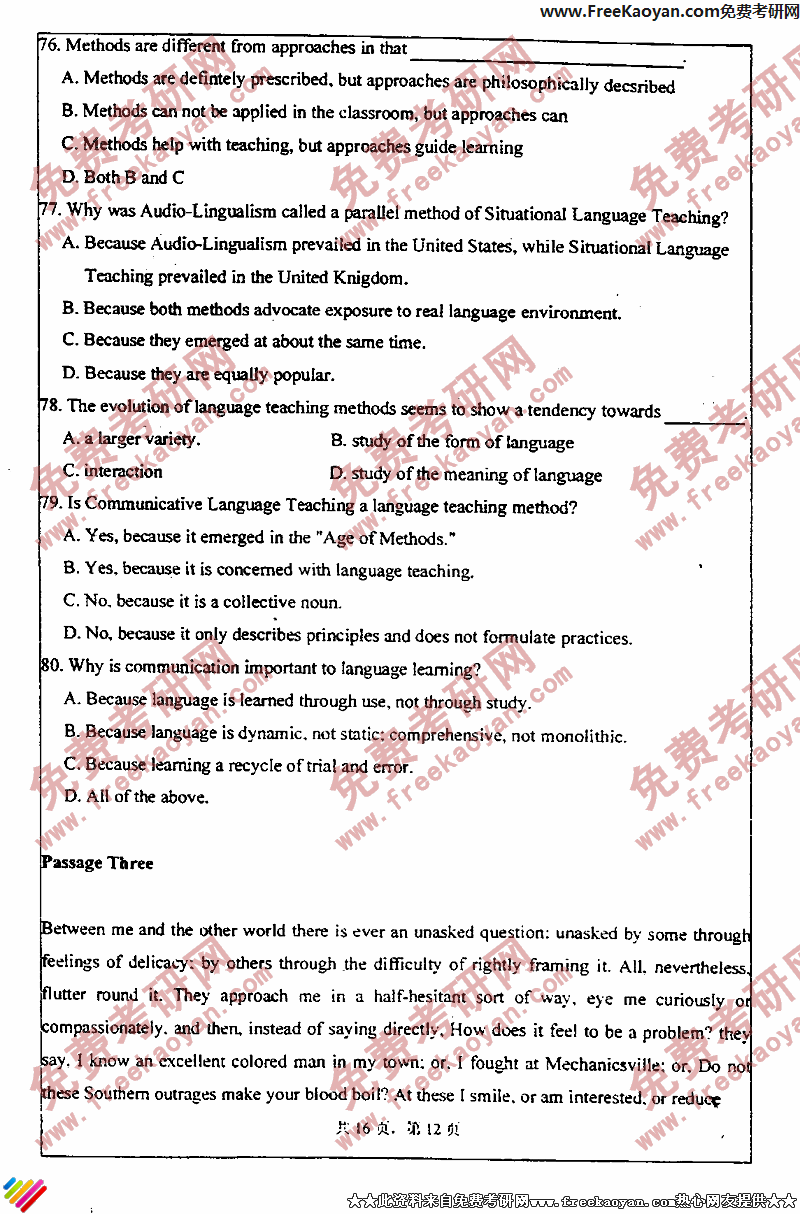 专业课考研经验 本站小编 FreeKaoyan 2018-01-22上海交通大学2004年考研真题-英语水平考试