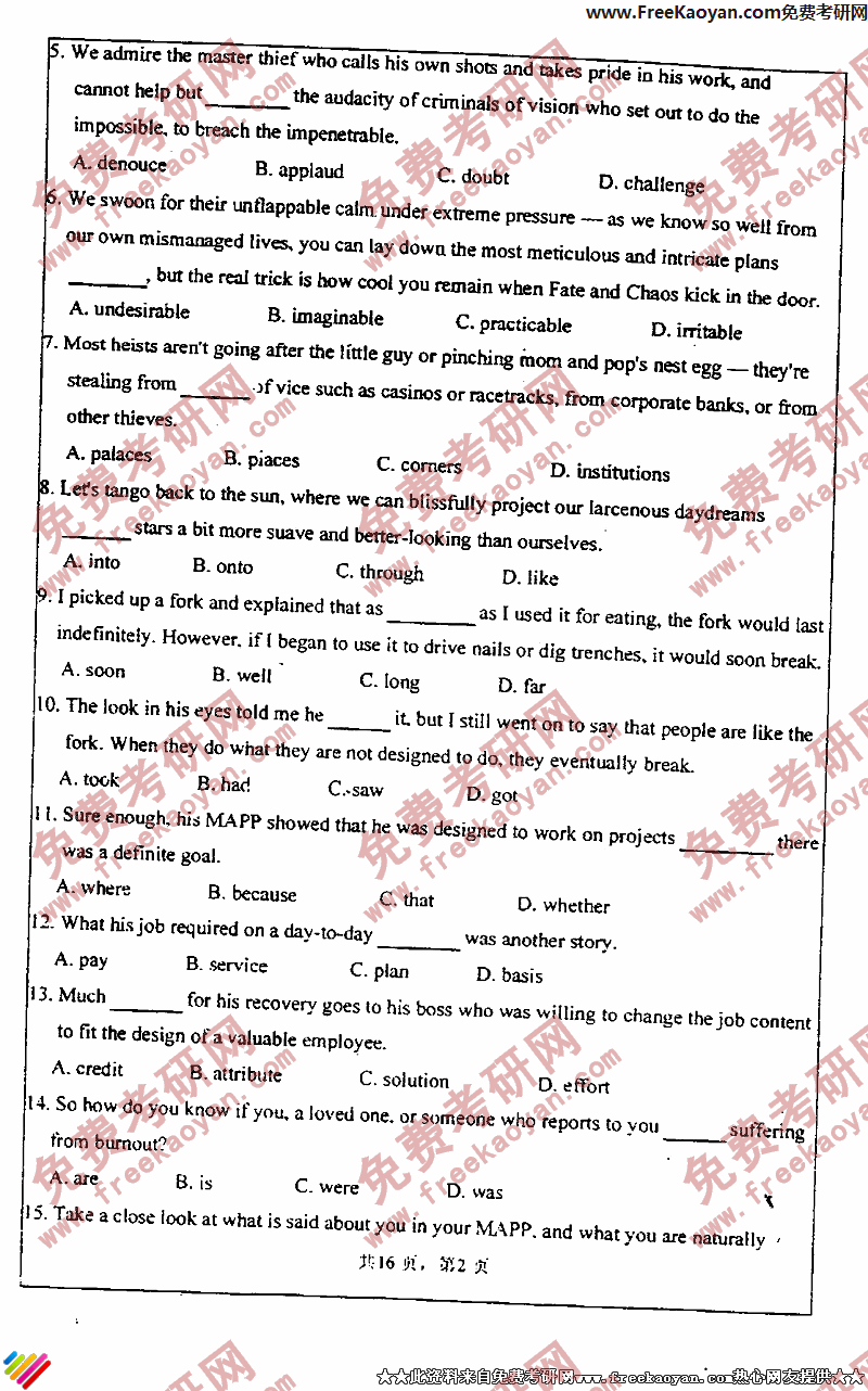 专业课考研经验 本站小编 FreeKaoyan 2018-01-22上海交通大学2004年考研真题-英语水平考试