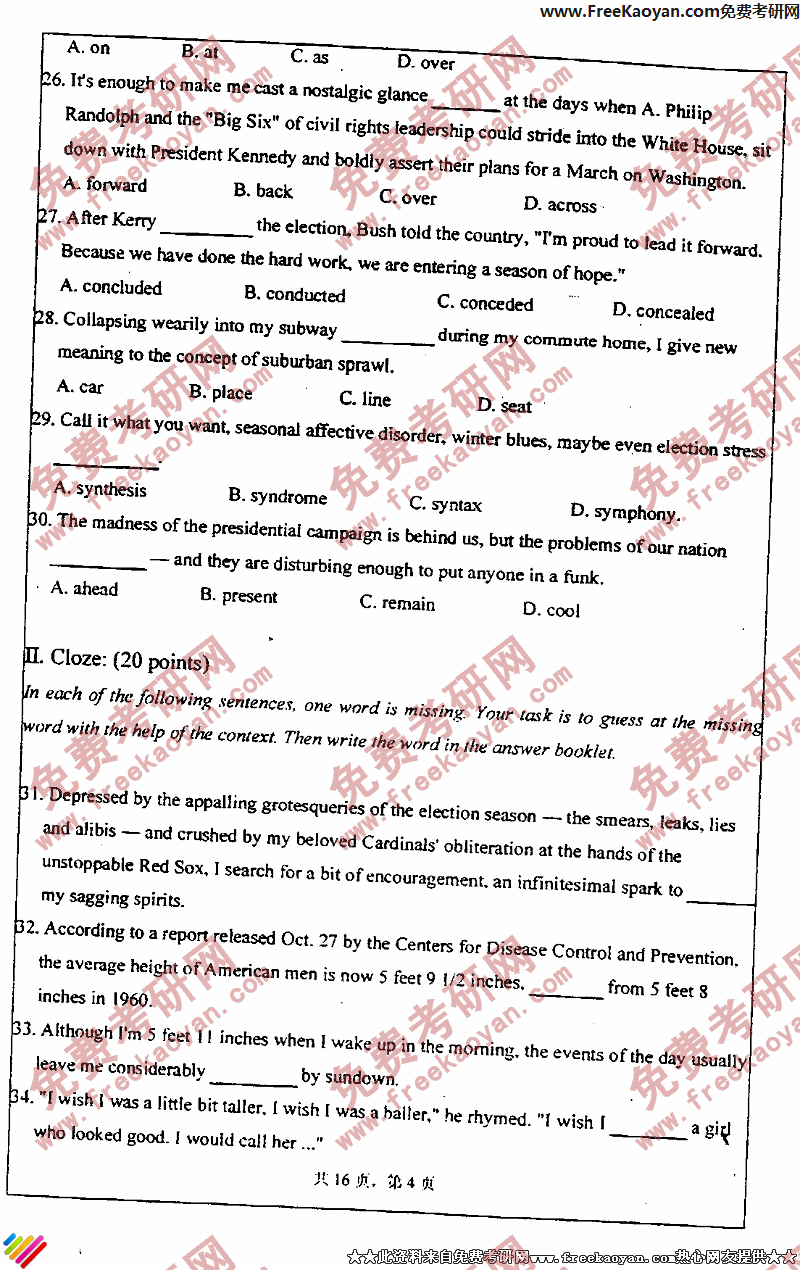 专业课考研经验 本站小编 FreeKaoyan 2018-01-22上海交通大学2004年考研真题-英语水平考试