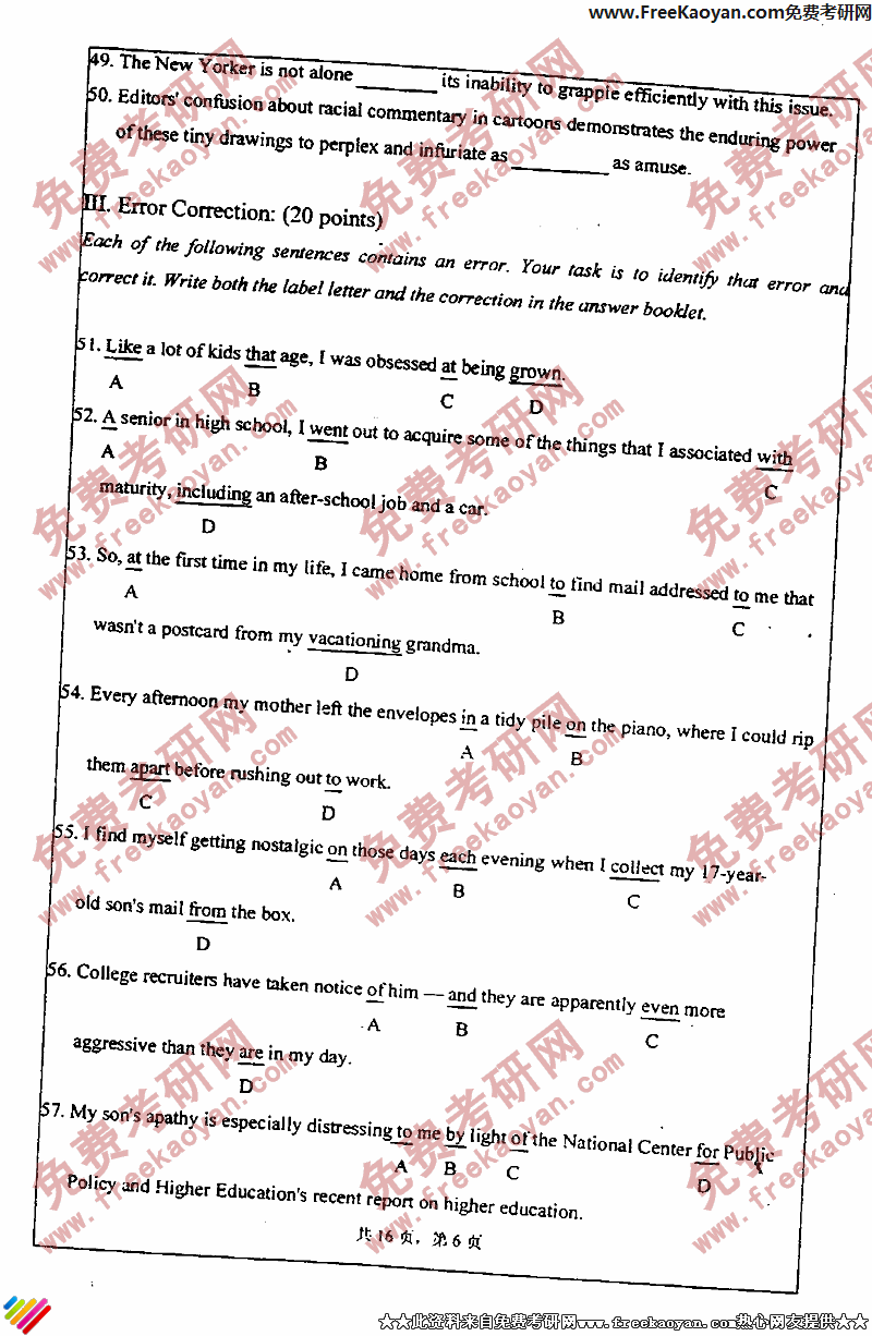 专业课考研经验 本站小编 FreeKaoyan 2018-01-22上海交通大学2004年考研真题-英语水平考试