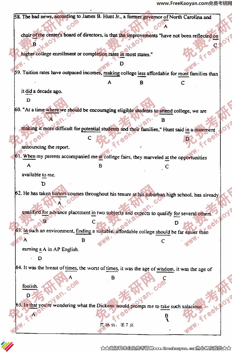 专业课考研经验 本站小编 FreeKaoyan 2018-01-22上海交通大学2004年考研真题-英语水平考试