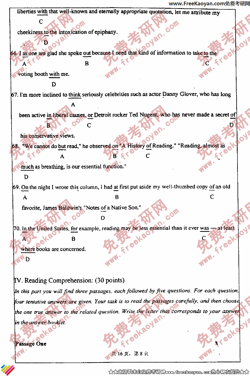 专业课考研经验 本站小编 FreeKaoyan 2018-01-22上海交通大学2004年考研真题-英语水平考试