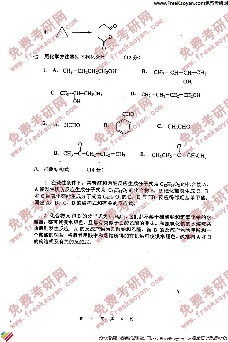 上海交通大学2005年考研真题-有机化学(II)(6)