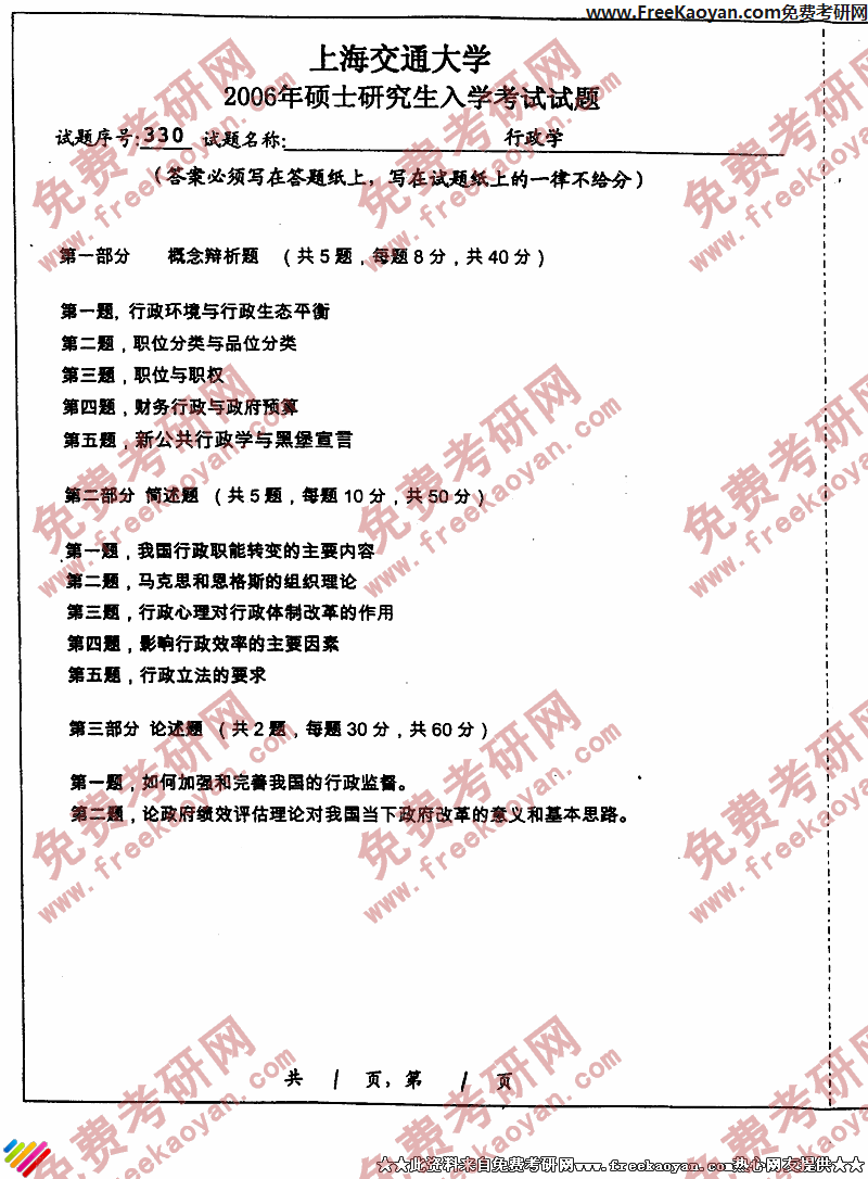 专业课考研经验 本站小编 FreeKaoyan 2018-01-22上海交通大学2005年考研真题-行政学