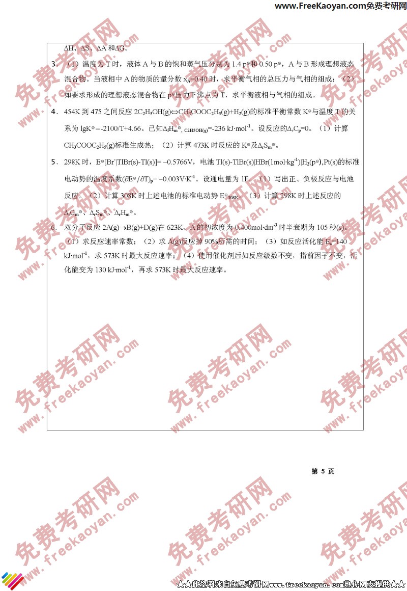 江苏大学2004年考研真题-物理化学(5)