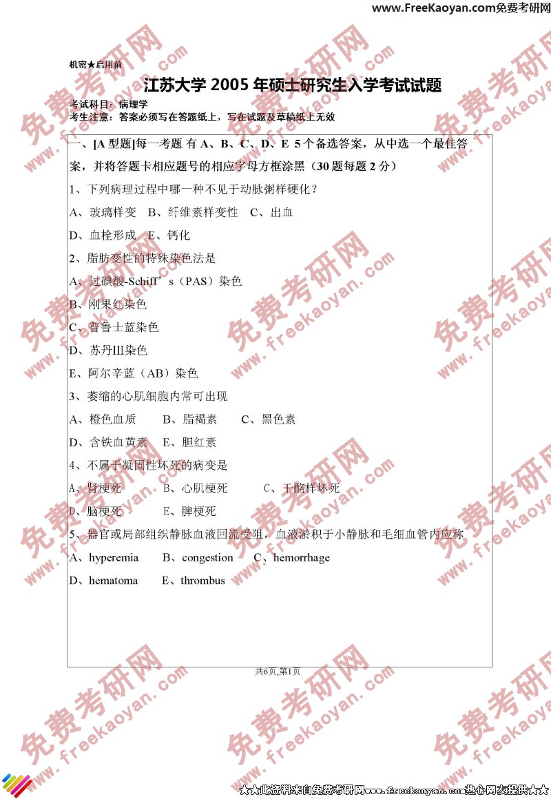 江苏大学2004年硕士研究生入学考试试题考试科目:药学综合考生注意:答案必须写在答题纸上,写在试题及草稿纸上无效!药理学部分一、名词解释(每题2分,共10分)1.受体2.膜反应性3.抗生素后效应4.生物利用度5.调节麻痹二、填空题(每空1分,共15分)1.在药物量反应量效关系曲线中,斜率越大提示 。 ...