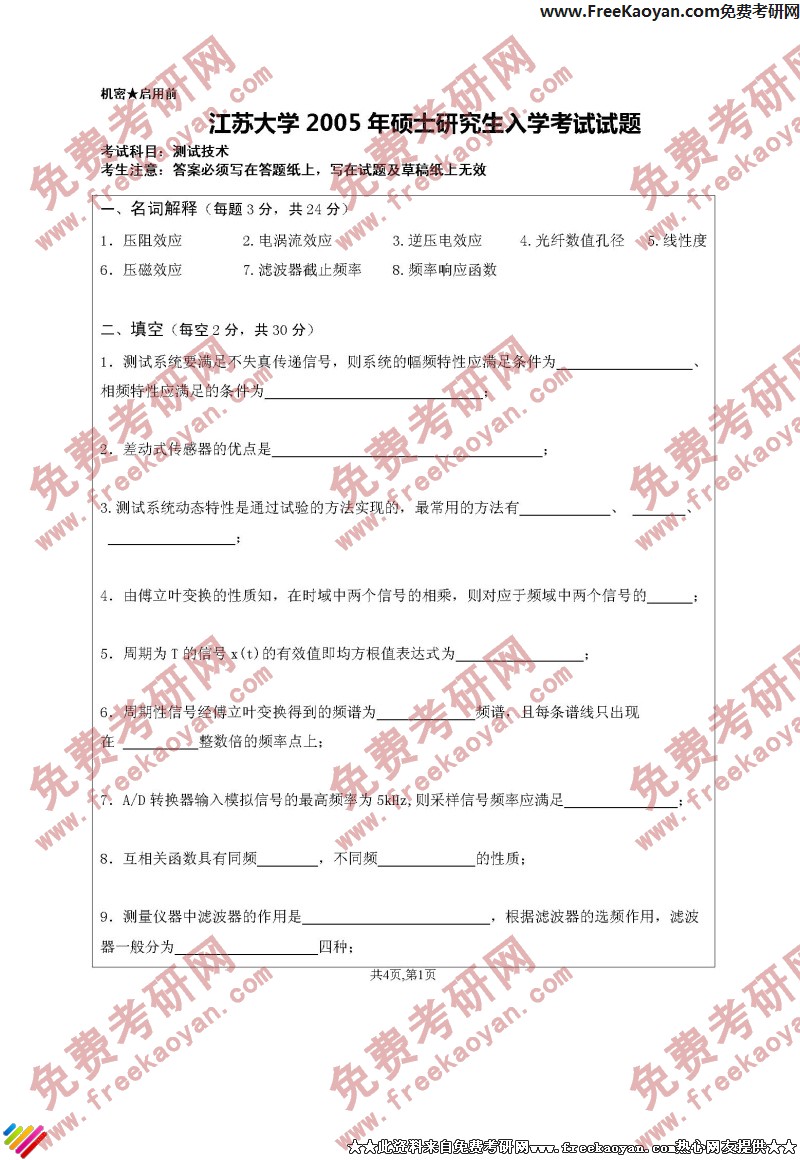 江苏大学2004年硕士研究生入学考试试题考试科目:工程材料及成型基础考生注意:答案必须写在答题纸上,写在试题及草稿纸上无效!一、 填空题(30分,每空1分)1.常见的金属晶格类型有 、 和 。2. 碳钢在平衡条件下的室温组织有 、 、 。3.在铸造生产中常用的细化晶粒的方法有 、 和 。4.钢的淬透 ...