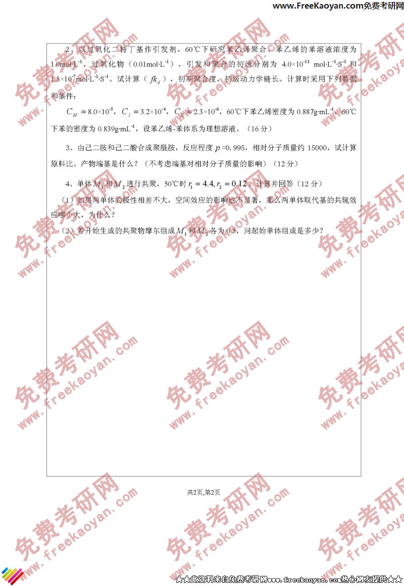 相关话题/江苏大学 考研真题 高分子化学