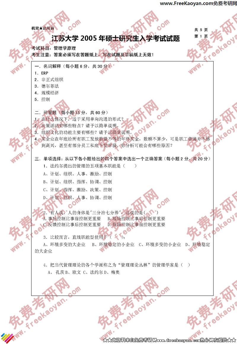 专业课考研经验 本站小编 FreeKaoyan 2018-01-22江苏大学2005年考研真题-工业工程