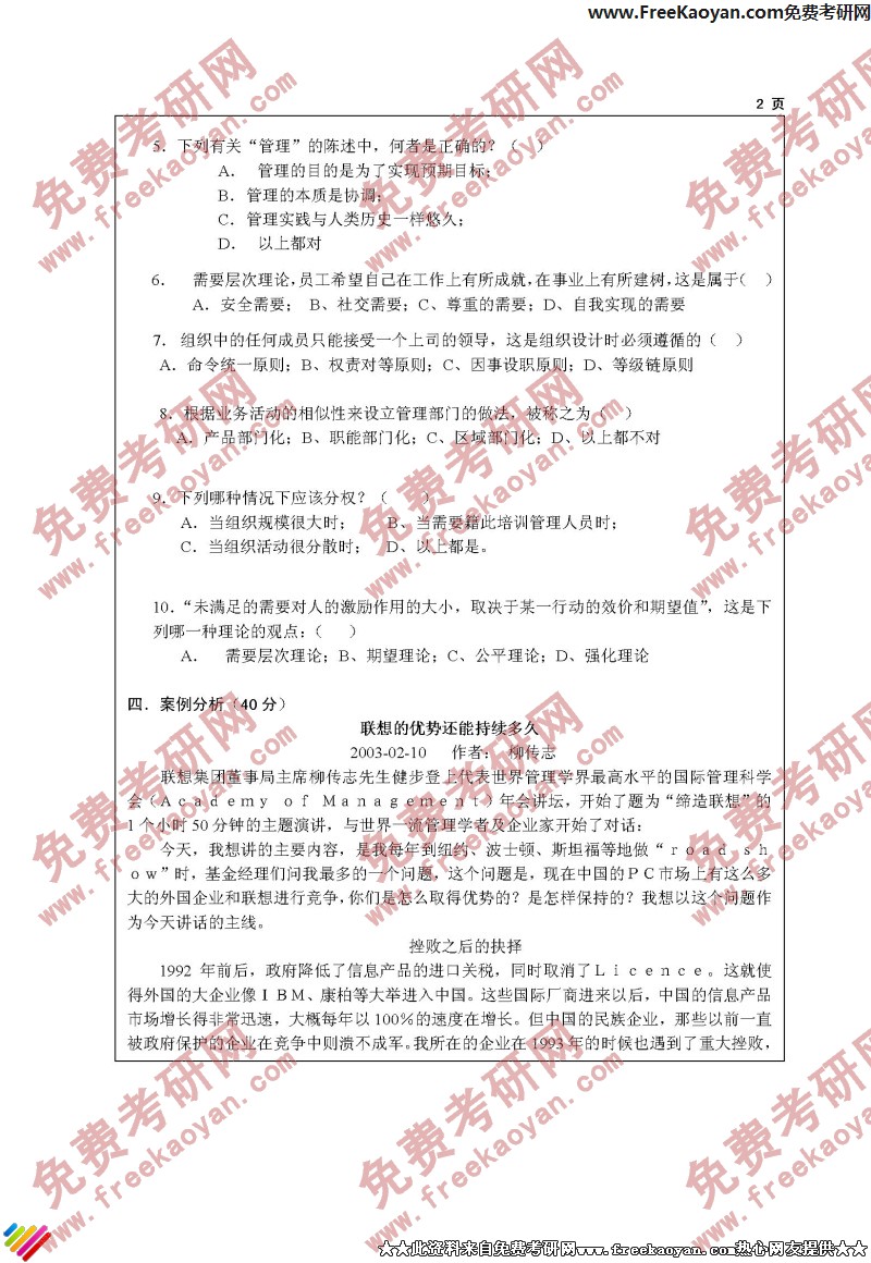 江苏大学2005年考研真题-管理学原理(2)