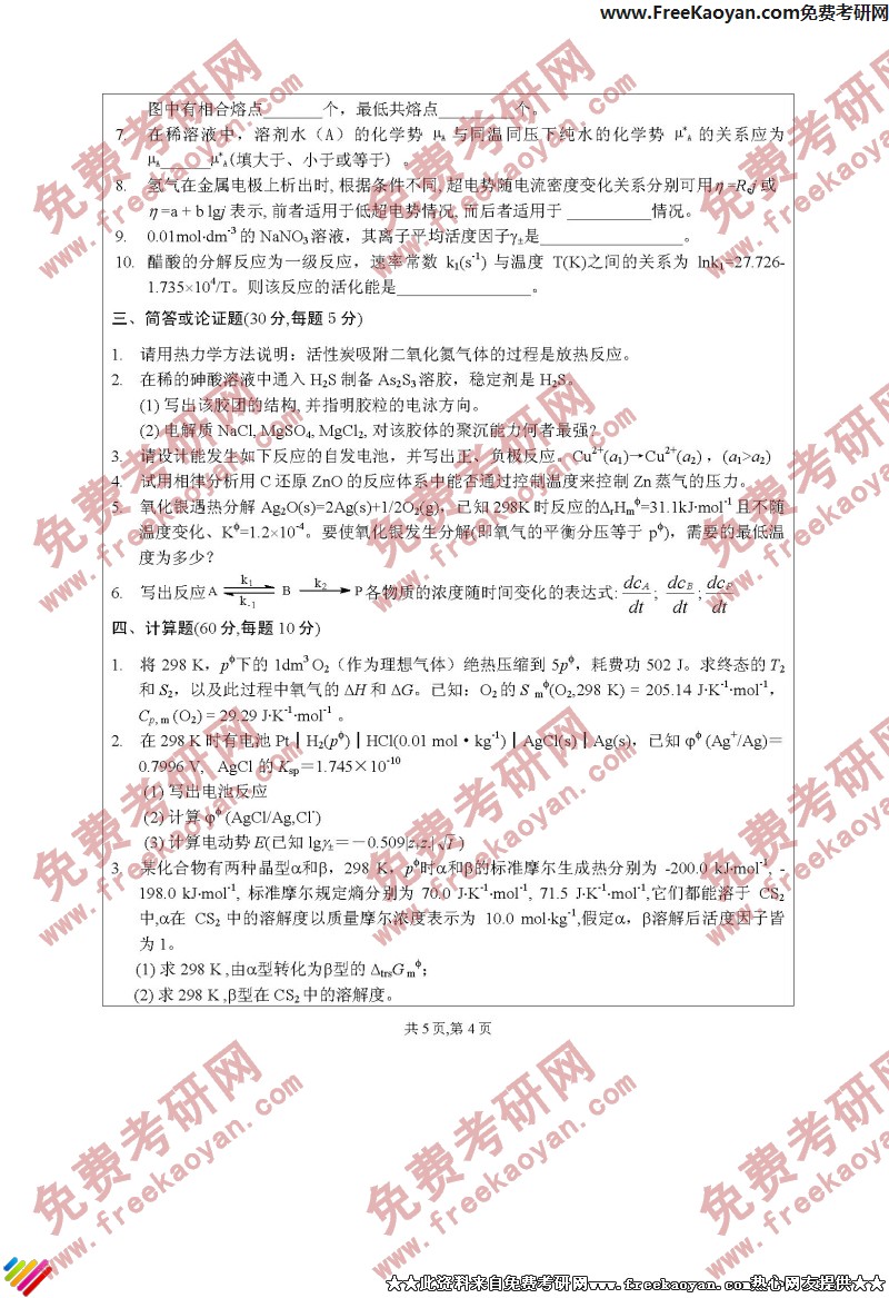 专业课考研经验 本站小编 FreeKaoyan 2018-01-22江苏大学2005年考研真题-分析化学
