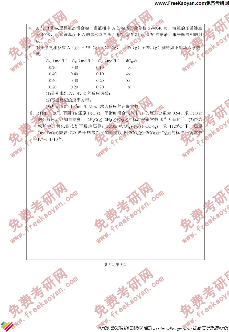 江苏大学2005年考研真题-物理化学(5)