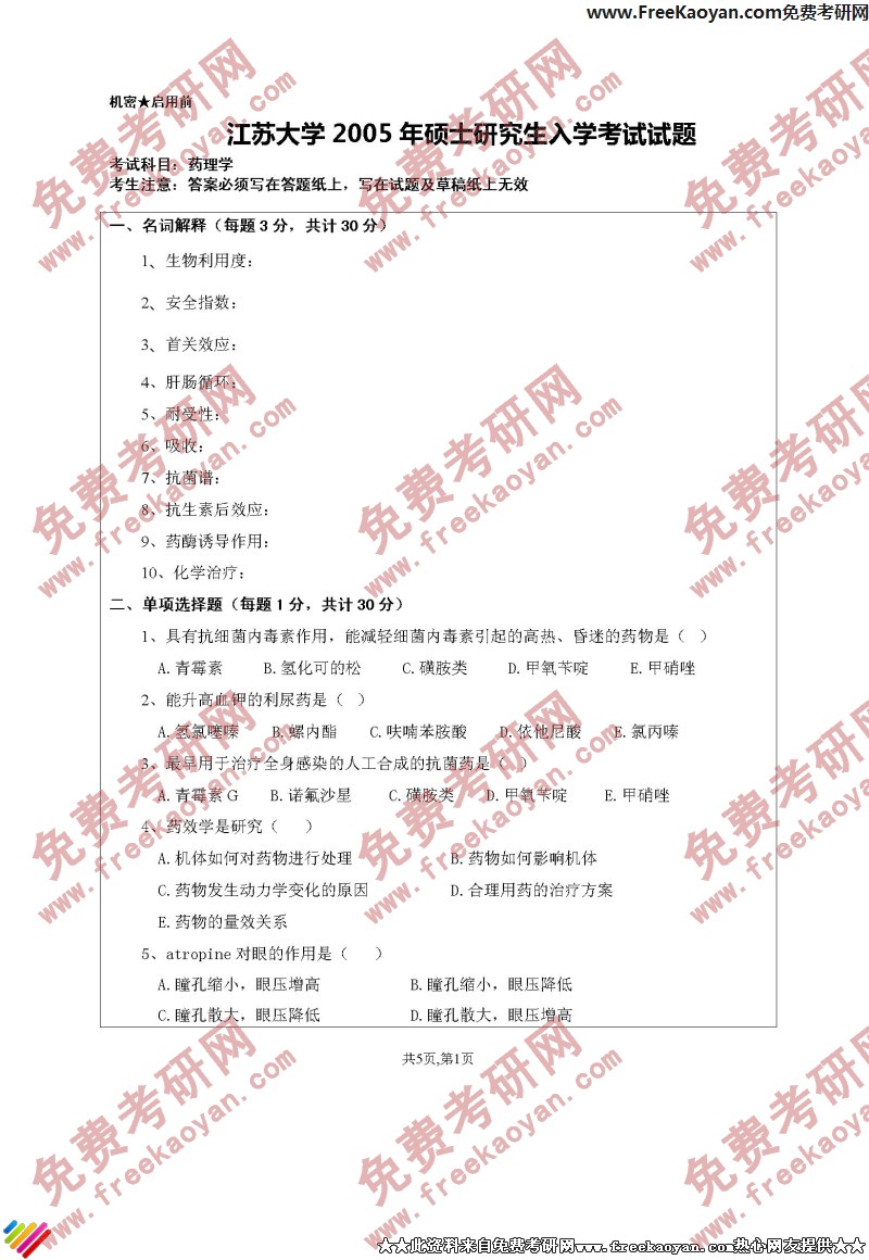 专业课考研经验 本站小编 FreeKaoyan 2018-01-22江苏大学2005年考研真题-生物化学