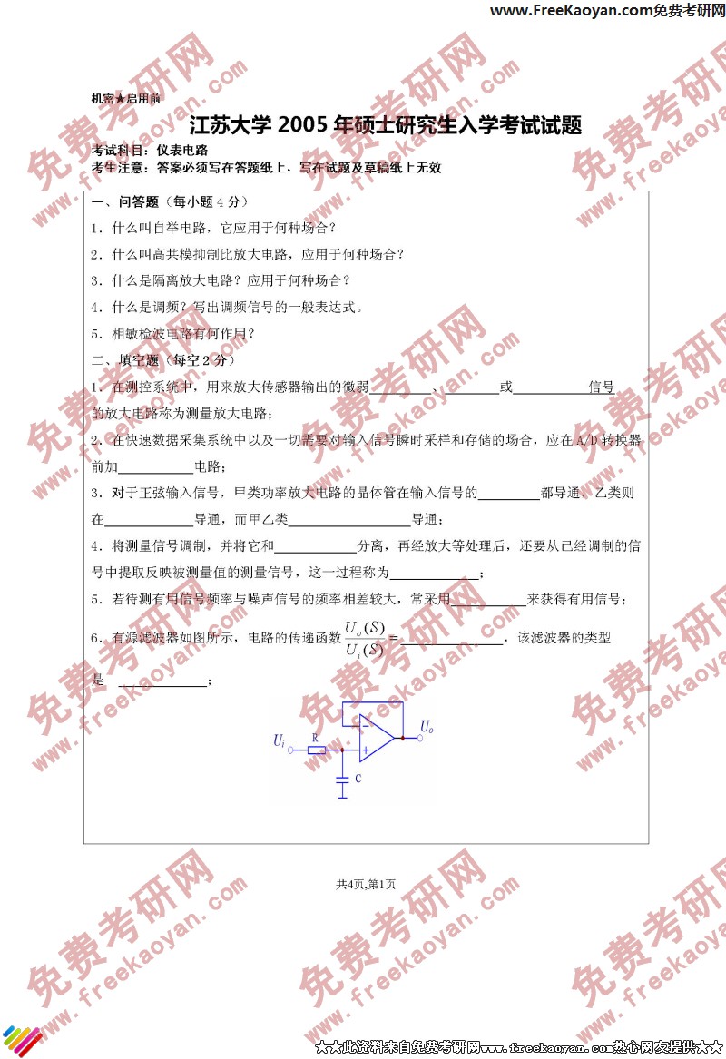 江苏大学2005年考研真题-仪表电路