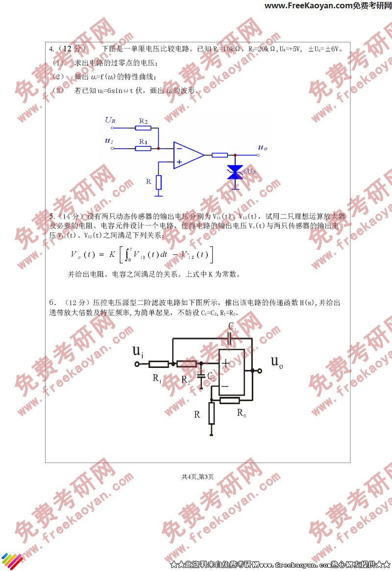 江苏大学2005年考研真题-仪表电路(3)