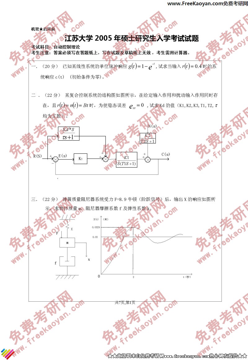 专业课考研经验 本站小编 FreeKaoyan 2018-01-22江苏大学2005年考研真题-信号与系统
