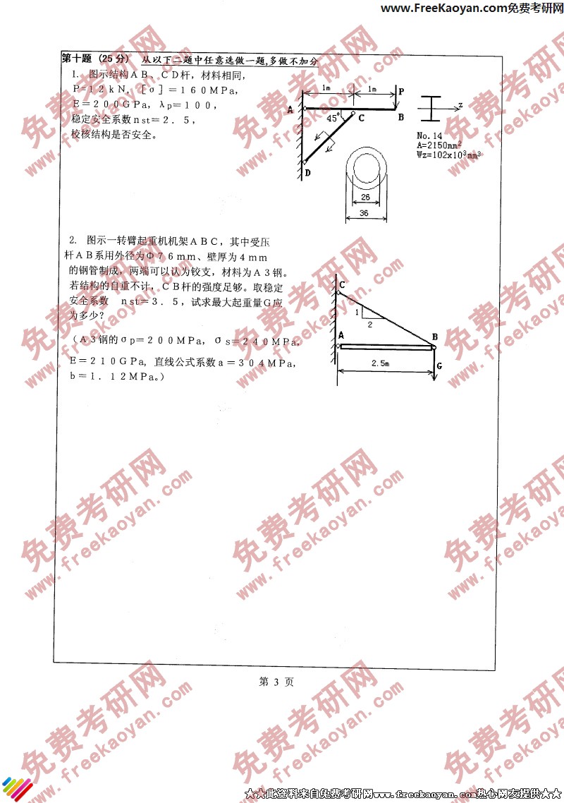 江苏大学2006年考研真题-材料力学(3)