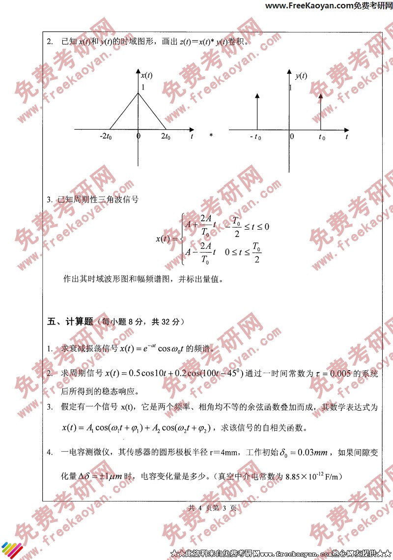 专业课考研经验 本站小编 FreeKaoyan 2018-01-22江苏大学2005年考研真题-信号与系统