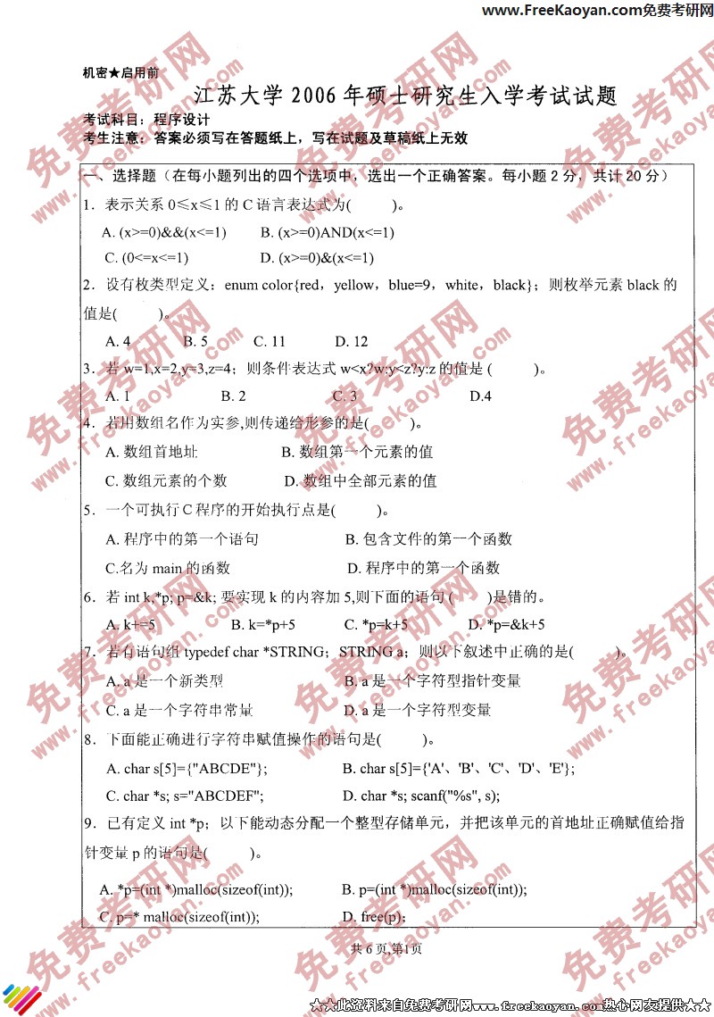 专业课考研经验 本站小编 FreeKaoyan 2018-01-22江苏大学2006年考研真题-安全系统工程