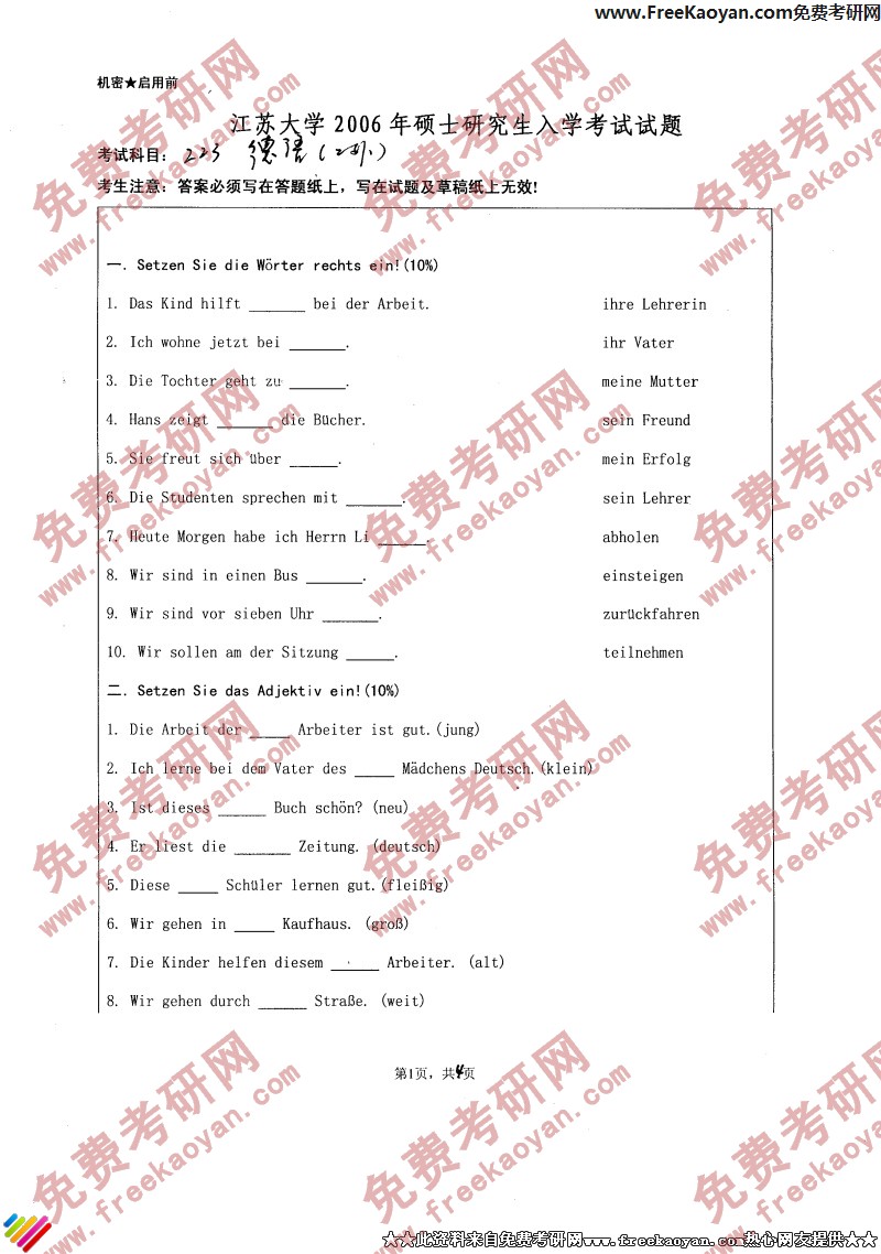 专业课考研经验 本站小编 FreeKaoyan 2018-01-22江苏大学2006年考研真题-材料力学