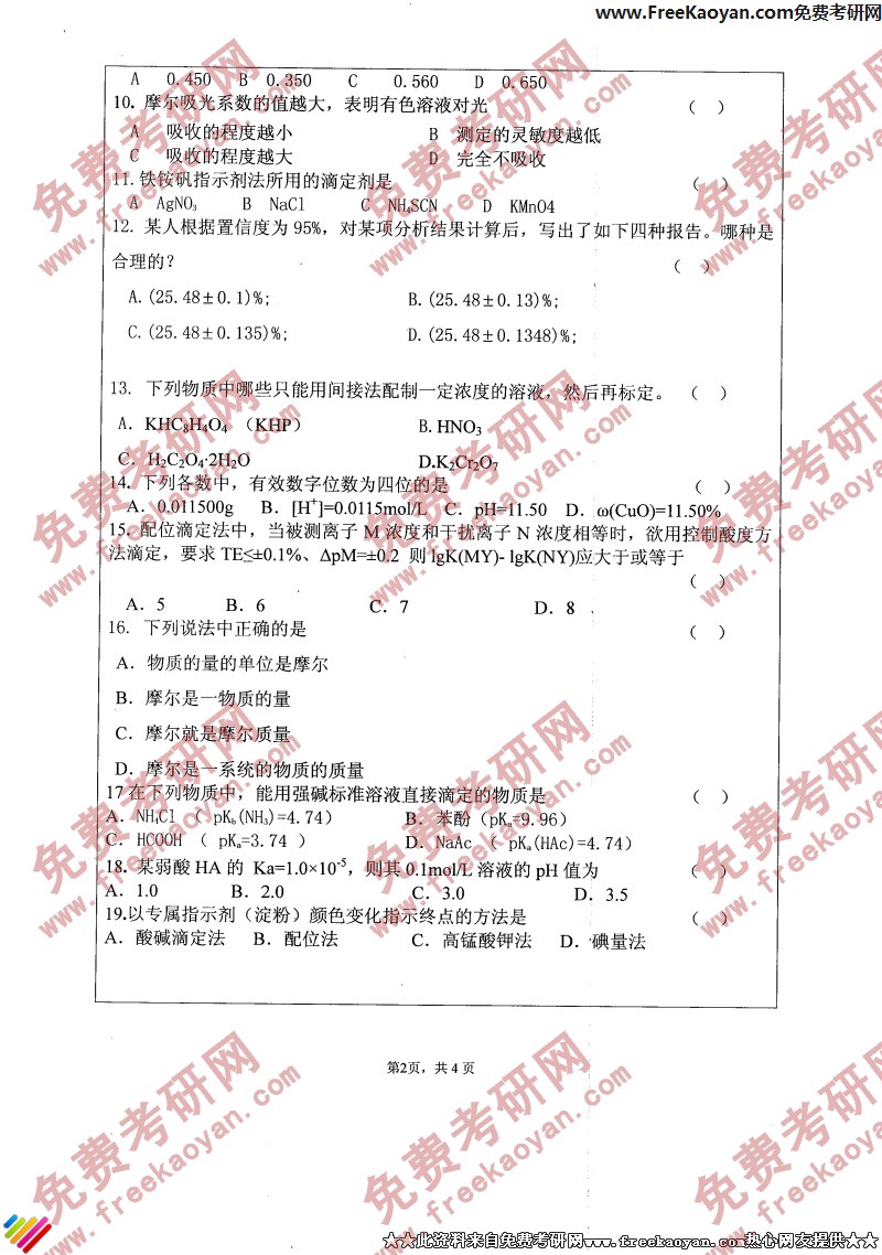 相关话题/江苏大学 考研真题 分析化学