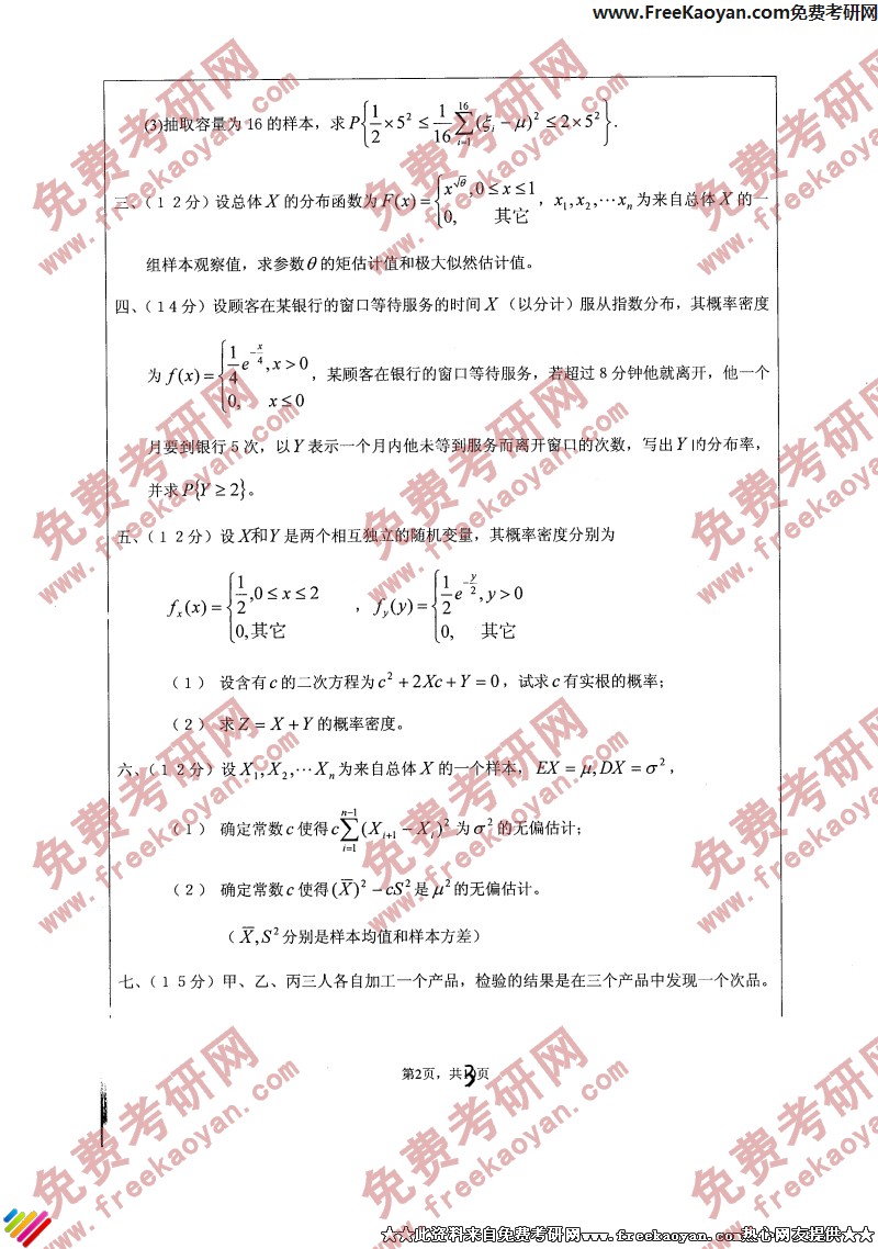 江苏大学2006年考研真题-概率论与数理统计(2)