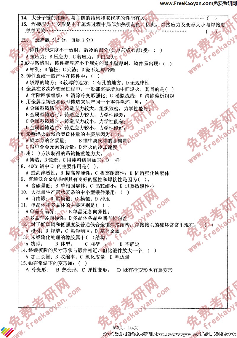 相关话题/考研真题 江苏大学 工程 基础 材料
