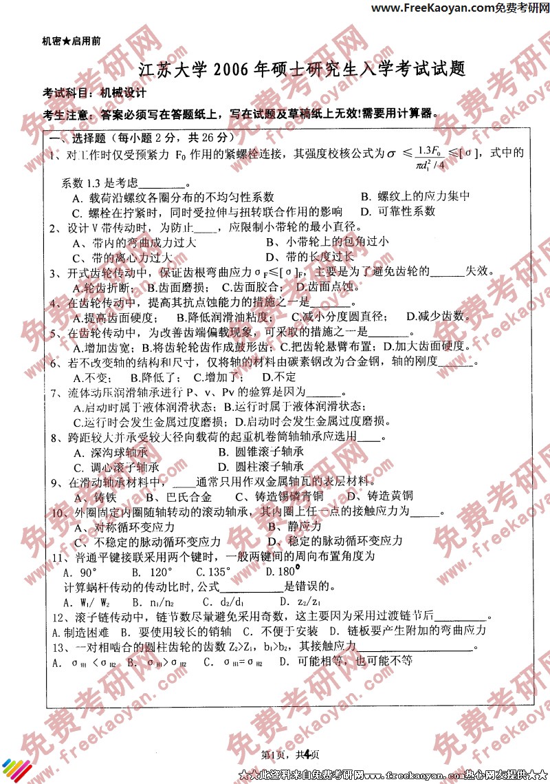 专业课考研经验 本站小编 FreeKaoyan 2018-01-22江苏大学2006年考研真题-工程材料及成型基础