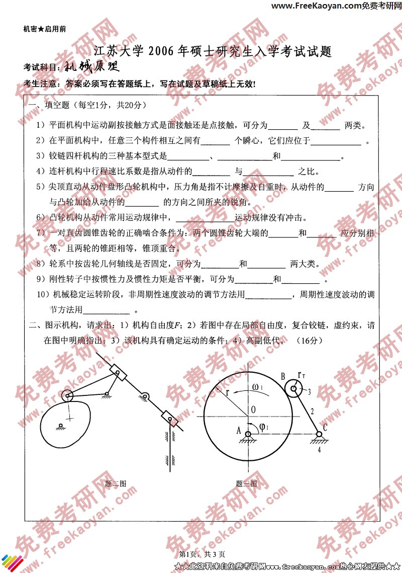 专业课考研经验 本站小编 FreeKaoyan 2018-01-22江苏大学2006年考研真题-机械设计学
