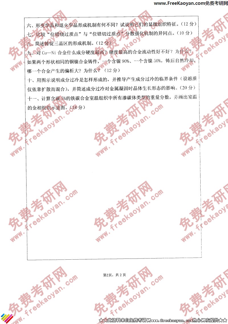 专业课考研经验 本站小编 FreeKaoyan 2018-01-22江苏大学2006年考研真题-工程材料及成型基础