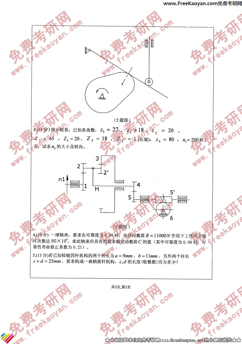 专业课考研经验 本站小编 FreeKaoyan 2018-01-22江苏大学2006年考研真题-机构力学