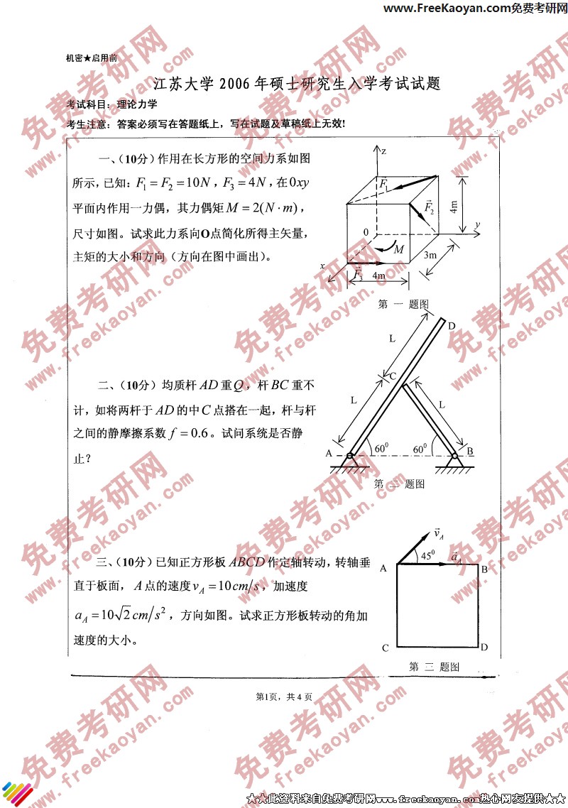 专业课考研经验 本站小编 FreeKaoyan 2018-01-22江苏大学2006年考研真题-机构力学