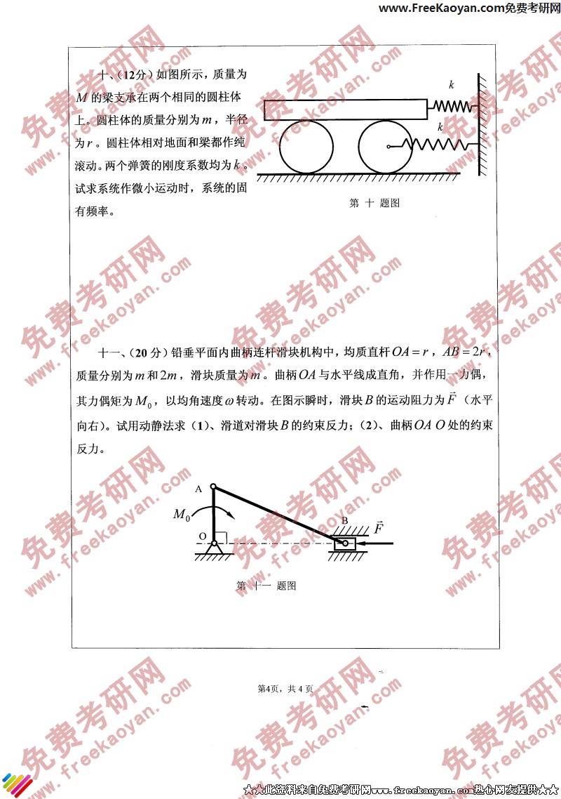 专业课考研经验 本站小编 FreeKaoyan 2018-01-22江苏大学2006年考研真题-机构力学