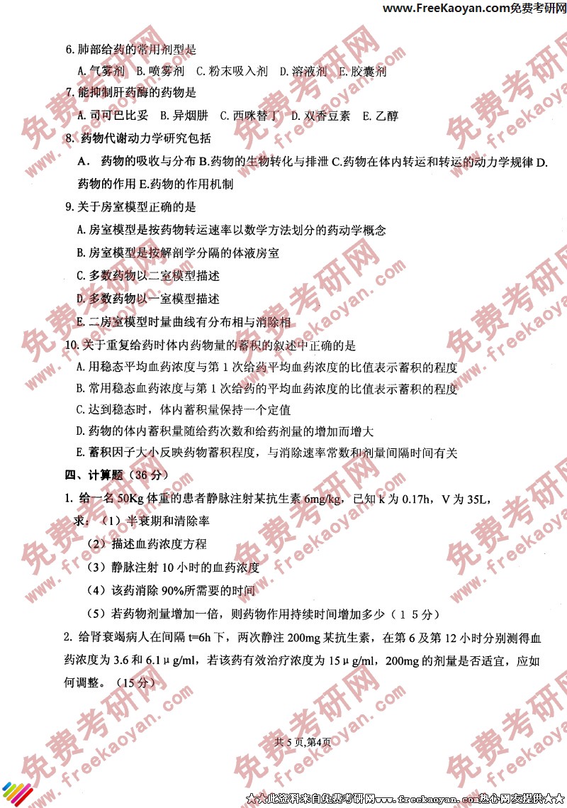 江苏大学2006年考研真题-生物药剂与药物动力学(4)