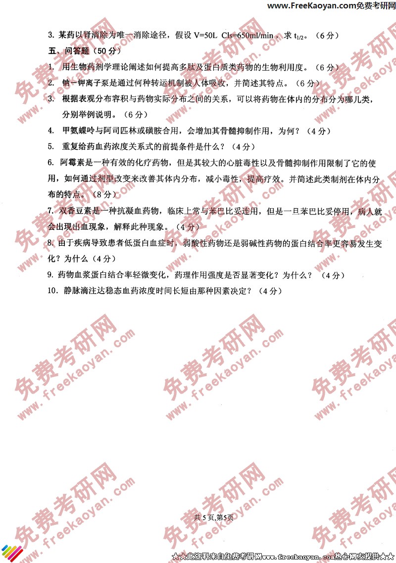 江苏大学2006年考研真题-生物药剂与药物动力学(5)