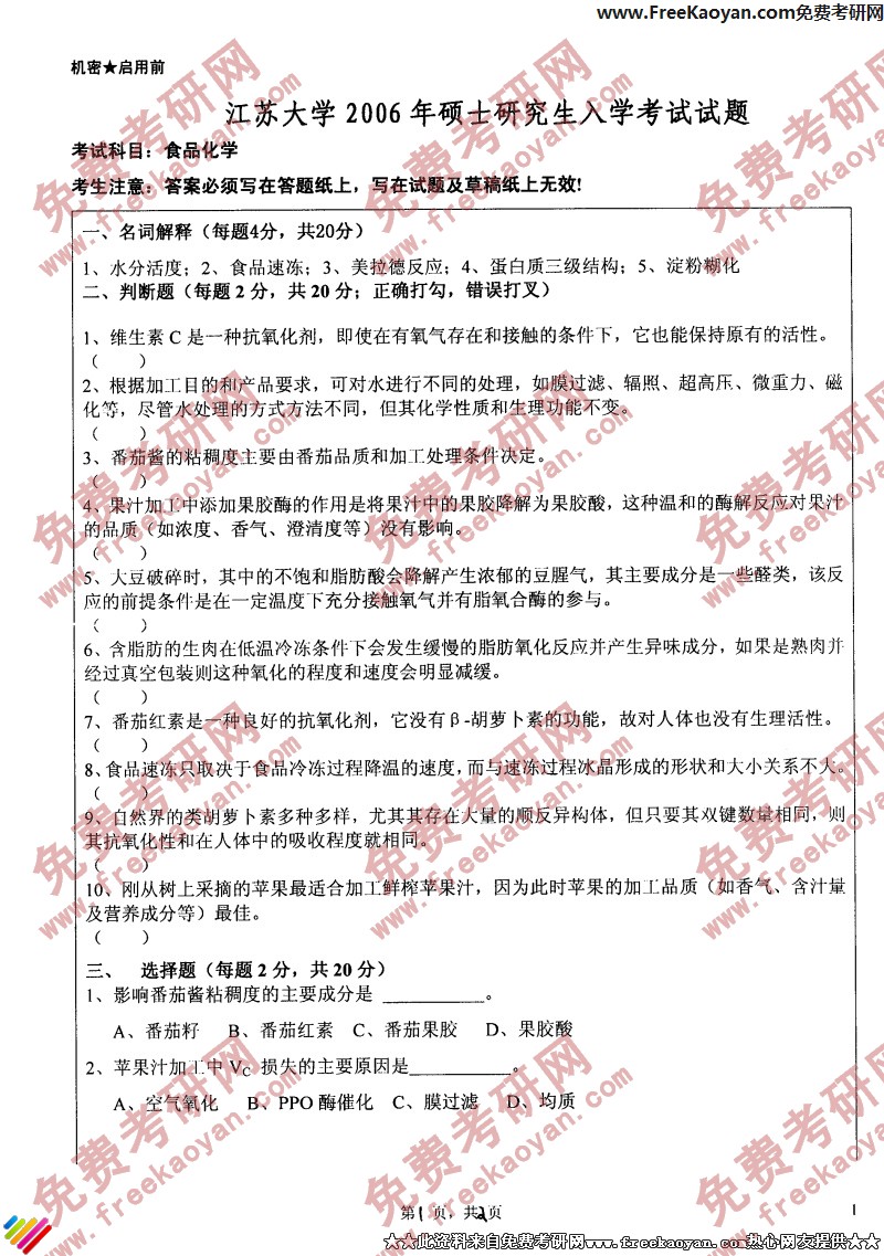 专业课考研经验 本站小编 FreeKaoyan 2018-01-22江苏大学2006年考研真题-农业机械学(上)
