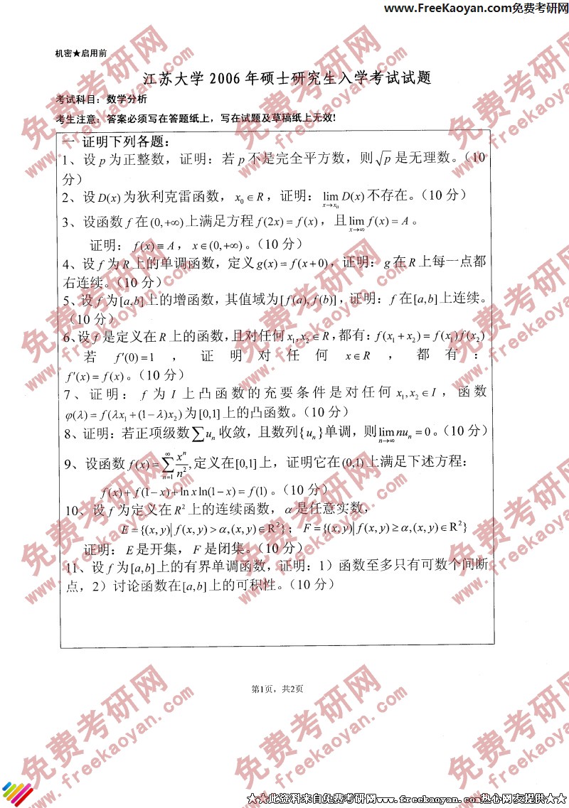 专业课考研经验 本站小编 FreeKaoyan 2018-01-22江苏大学2006年考研真题-马克思主义哲学