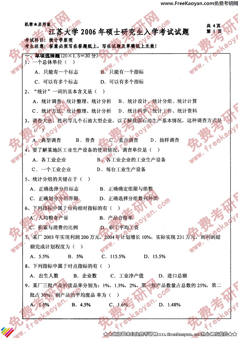 专业课考研经验 本站小编 FreeKaoyan 2018-01-22江苏大学2006年考研真题-毛泽东思想概论与邓小平理论