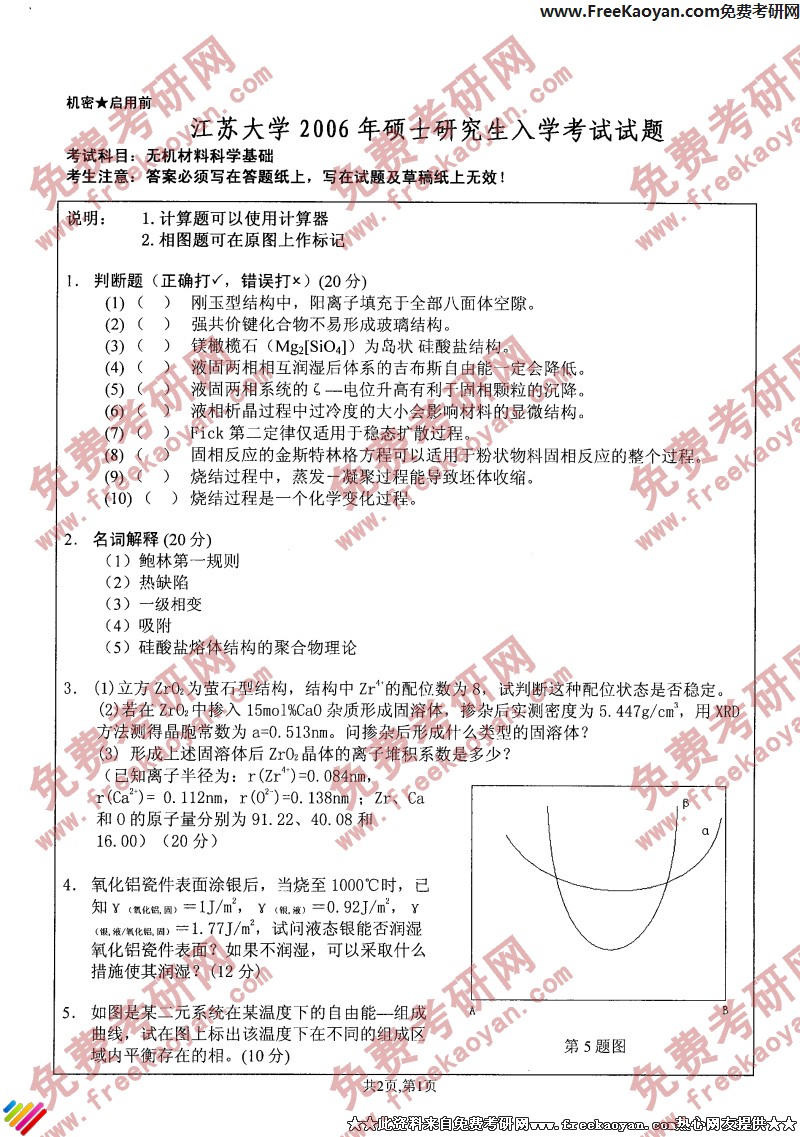 相关话题/考研真题 江苏大学 材料科学基础 无机