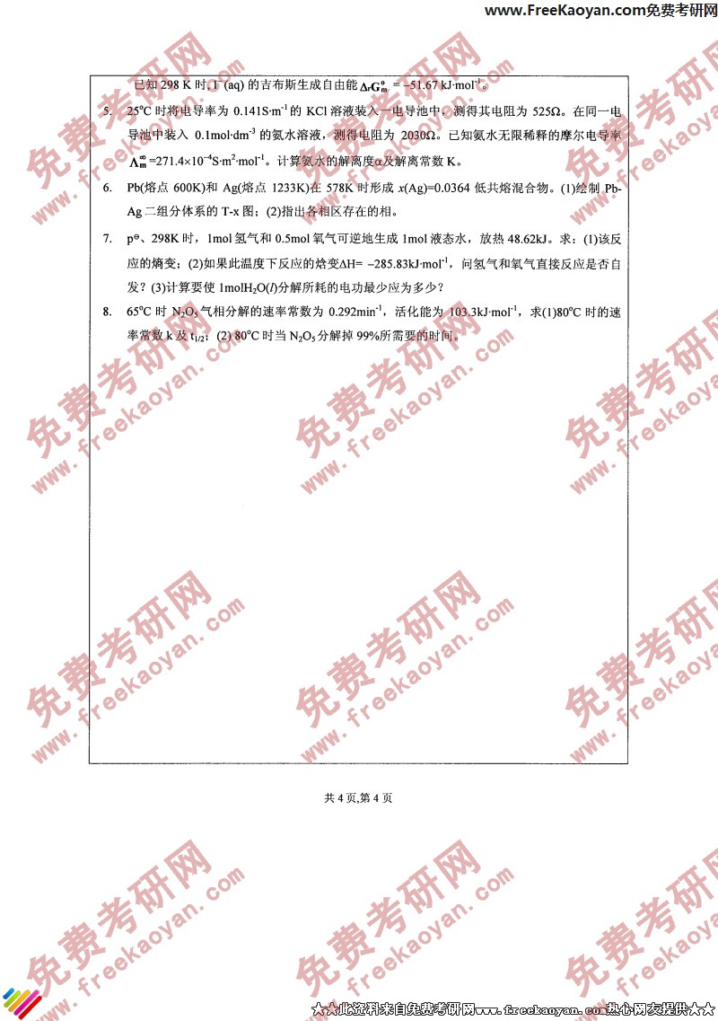 江苏大学2006年考研真题-物理化学(4)