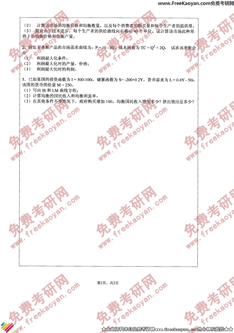 江苏大学2006年考研真题-西方经济学(2)