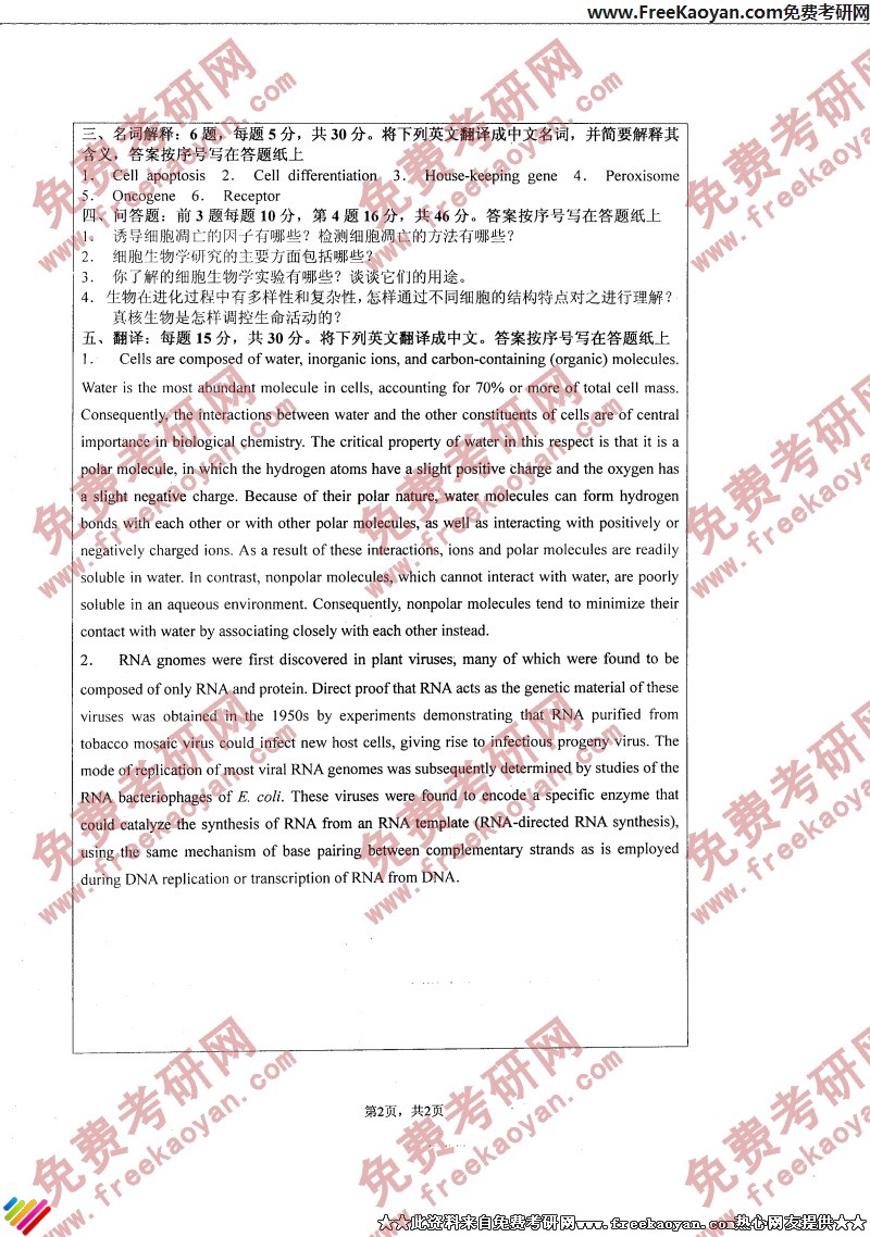 专业课考研经验 本站小编 FreeKaoyan 2018-01-22江苏大学2006年考研真题-生物化学