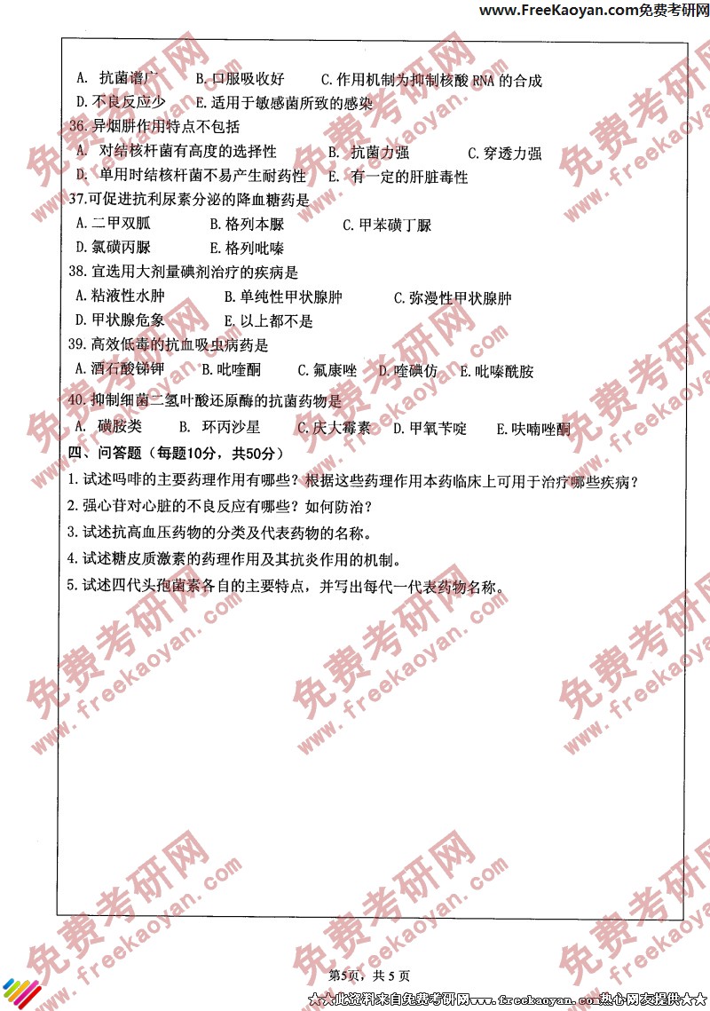 专业课考研经验 本站小编 FreeKaoyan 2018-01-22江苏大学2006年考研真题-天然药物化学