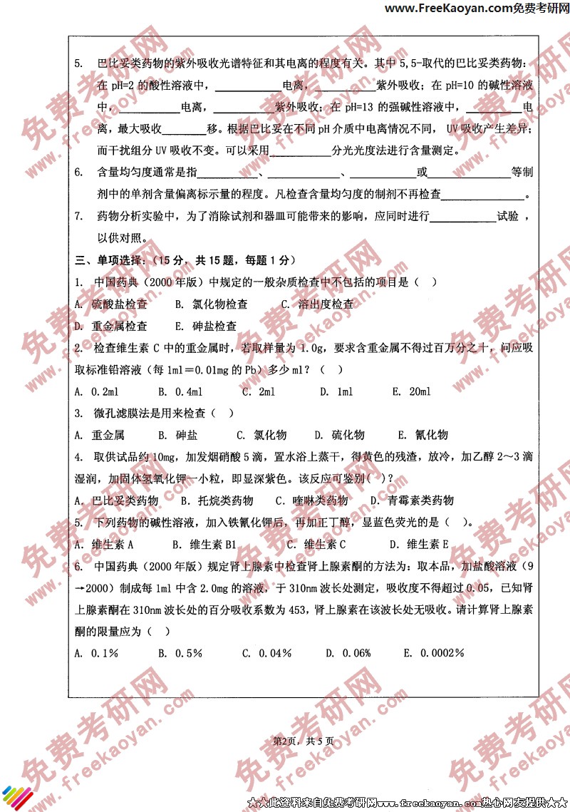 专业课考研经验 本站小编 FreeKaoyan 2018-01-22江苏大学2006年考研真题-天然药物化学