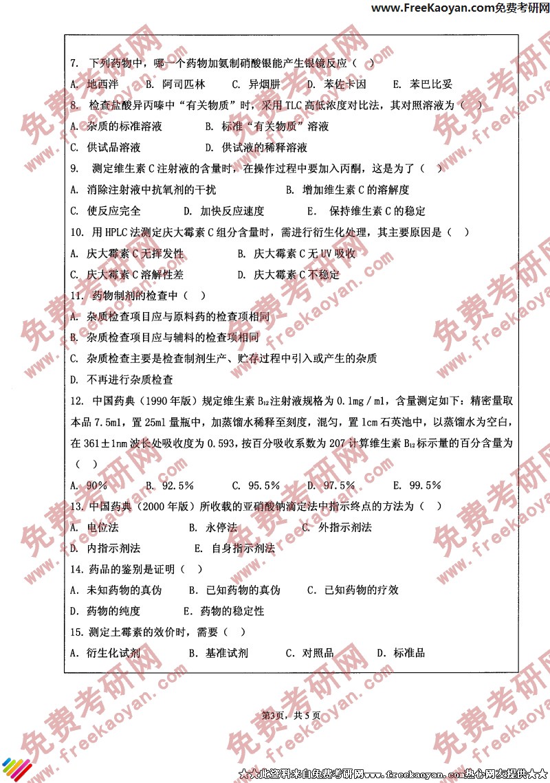 专业课考研经验 本站小编 FreeKaoyan 2018-01-22江苏大学2006年考研真题-天然药物化学
