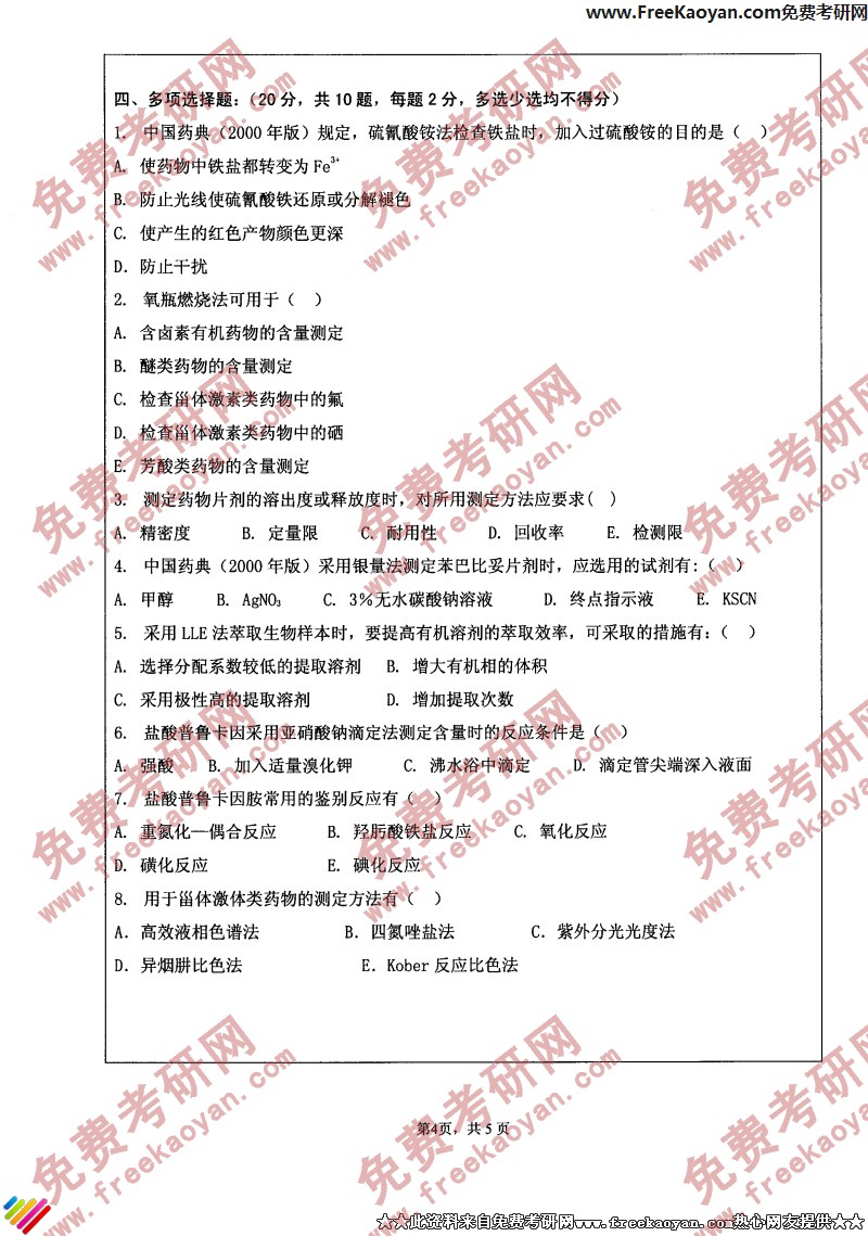 专业课考研经验 本站小编 FreeKaoyan 2018-01-22江苏大学2006年考研真题-天然药物化学