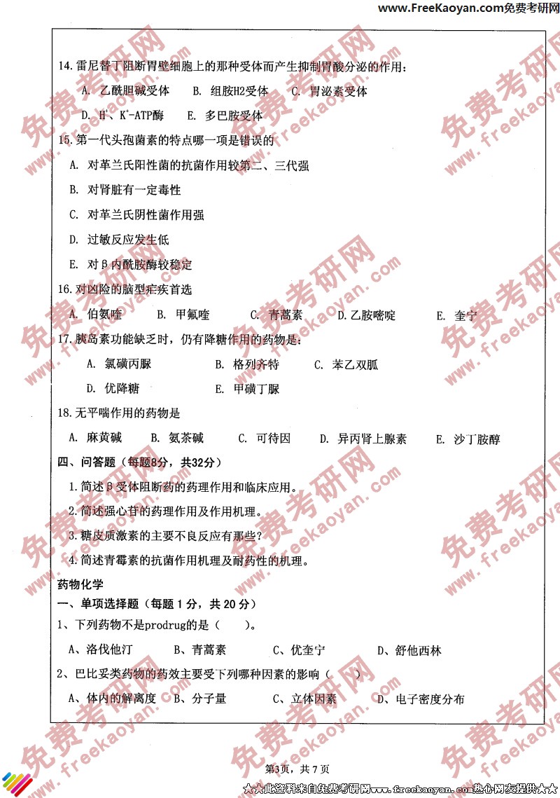 专业课考研经验 本站小编 FreeKaoyan 2018-01-22江苏大学2006年考研真题-药物分析学