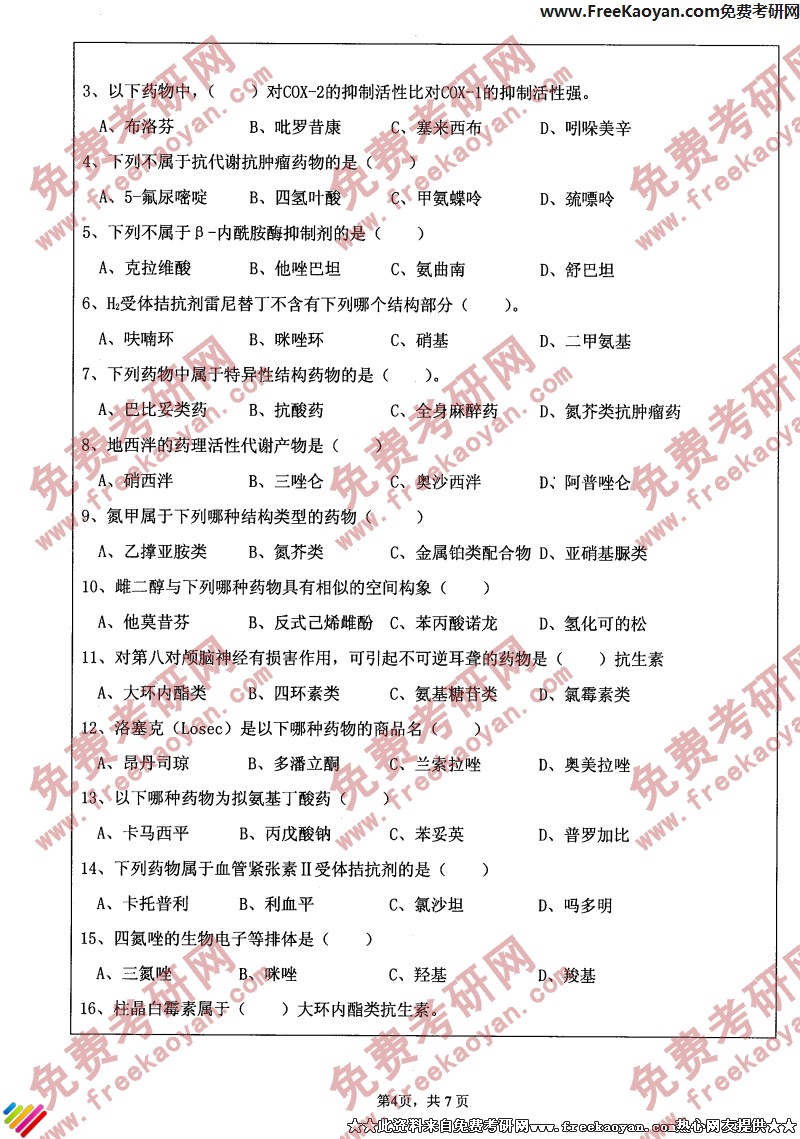 专业课考研经验 本站小编 FreeKaoyan 2018-01-22江苏大学2006年考研真题-药物分析学