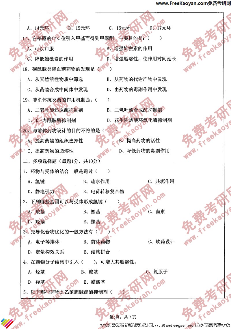 江苏大学2006年考研真题-药学综合(5)