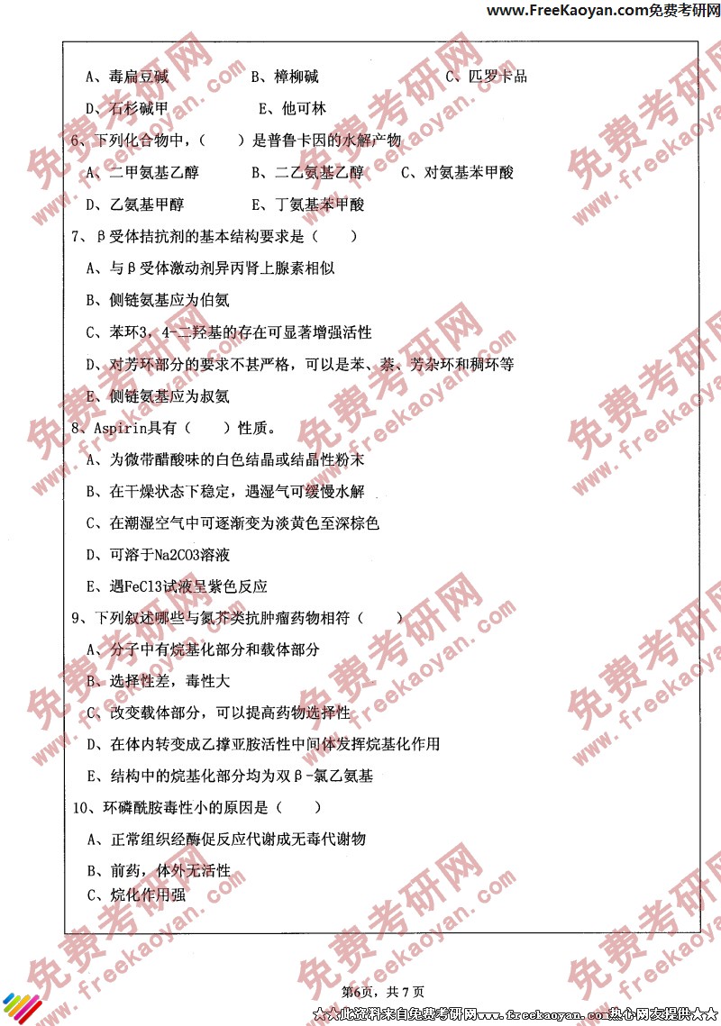 专业课考研经验 本站小编 FreeKaoyan 2018-01-22江苏大学2006年考研真题-药物分析学